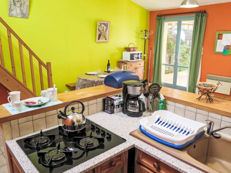 "Le Cazelle", 2-Zimmer-Reihenhaus 55 m2. Einfach und schön eingerichtet: Wohn-/Esszimmer mit Esstisch und TV (Flachbildschirm). Ausgang zur Terrasse. 1 Zimmer mit 1 franz. Bett (140 cm, Länge 190 cm). Offene Küche (Mini-Backofen, 4 Flammen, Toaster, Wasserkocher, Mikrowelle, Tiefkühler, elektrische Kaffeemaschine). Dusche/WC. Obergeschoss: abgeschrägte Galerie mit 2 Betten (90 cm, Länge 190 cm). E-Heizung. Terrasse 12 m2, überdacht. Terrassenmöbel. Bitte beachten: geeignet für Familien. Nichtraucher-Haus. Maximal 2 Haustiere/Hunde erlaubt. Rauchmelder. Inserat einer Privatperson nach Artikel 155, IV, CGI.