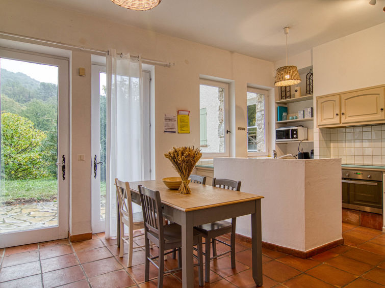 "Les Grenaches", 4-Zimmer-Reihenhaus 130 m2 auf 2 Stockwerken. Komfortabel und schön eingerichtet: Wohnzimmer mit offenem Kamin (nur Deko), TV und Klimaanlage. 1 Zimmer mit 3 Betten (90 cm, Länge 190 cm), Dusche/WC. Ausgang zur Terrasse. Offene Küche (Backofen, Geschirrspüler, 4 Glaskeramikplatten, Toaster, Mikrowelle, elektrische Kaffeemaschine). Obergeschoss: 1 Zimmer mit 3 Betten (90 cm, Länge 190 cm), Bad/WC. 1 Zimmer mit 1 franz. Bett (160 cm, Länge 190 cm), Dusche/WC. E-Heizung. Terrasse 30 m2. Terrassenmöbel, Gartengrill. Zur Verfügung: Waschmaschine, Bügeleisen, Babybett bis 3 Jahre. Internet (Wireless LAN, gratis). Parkplatz beim Haus. Bitte beachten: ein Doppelzimmer liegt außerhalb der Wohnung. Nichtraucher-Haus. Rauchmelder. Inserat eines gewerblichen Vermieters nach Artikel 155, IV, CGI