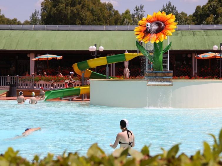 "Happy Plus", 4-Zimmer-Mobilheim 32 m2. Komfortabel eingerichtet: Wohn-/Esszimmer mit E-Heizung und Klimaanlage. 1 Zimmer mit 1 franz. Bett (140 cm, Länge 190 cm). 2 Zimmer, jedes Zimmer mit 2 Betten (70 cm, Länge 190 cm). Offene Küche (4 Kochplatten, Mikrowelle, Tiefkühler, elektrische Kaffeemaschine). Dusche, sep. WC. Terrasse teilweise überdacht. Terrassenmöbel, Elektrogrill (mobil), Liegestühle (2). Zur Verfügung: Fliegengitter. Parkplatz (1 Auto) in 200 m. Bitte beachten: Nichtraucher-Unterkunft. Maximal 1 kleines Haustier/Hund erlaubt. IT049001B1AGBPI7WV