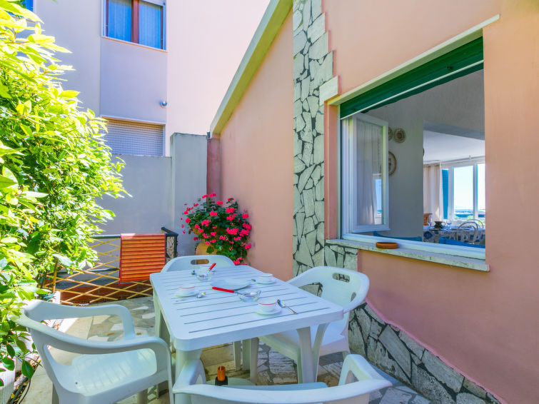 "Harbour", 2-Zimmer-Haus 55 m2, im Erdgeschoss. Geräumig und hell, einfach und zweckmässig eingerichtet: Wohn-/Schlafzimmer mit 1 Doppeldiwanbett. Ausgang zum Gartensitzplatz. 1 Doppelzimmer. Offene Küche (Geschirrspüler, 4 Glaskeramikplatten, Toaster, Wasserkocher, Mikrowelle) mit Esstisch und TV. Dusche/Bidet/WC. E-Heizung, Klimaanlage. Gartensitzplatz. Terrassenmöbel. Sehr schöne Sicht auf das Meer und den Hafen. Parkplatz. Bitte beachten: Maximal 1 Haustier/Hund erlaubt. Eigener Eingang, Feuerlöscher. IT049018B425WZ96NT