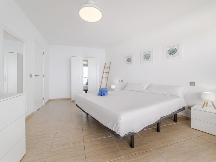 "Punta del Sol", 3-Zimmer-Wohnung 110 m2 im 1. Stock. Objekt geeignet für 4 Erwachsene. Geräumig und hell, zweckmässig und komfortabel eingerichtet: Wohn-/Esszimmer mit Digital-TV und Ventilator. Ausgang zum Balkon. 1 Zimmer mit 1 franz. Bett (1 x 150 cm, Länge 190 cm), Digital-TV und Ventilator. 1 Zimmer mit 1 Doppelbett (1 x 150 cm, Länge 190 cm), Ventilator. Küche (Backofen, 4 Glaskeramikplatten, Toaster, Wasserkocher, Mikrowelle, elektrische Kaffeemaschine). 2 Duschen/WC. Keine Heizmöglichkeit. Grosser Balkon. Terrassenmöbel. Sehr schöne Sicht auf das Meer. Zur Verfügung: Waschmaschine, Bügeleisen, Haartrockner. Internet (WLAN, gratis). Parkplatz Nr. 13 (überdacht). Bitte beachten: geeignet für Familien. Nichtraucher-Unterkunft. Feuerlöscher. VV-38-4-0113161