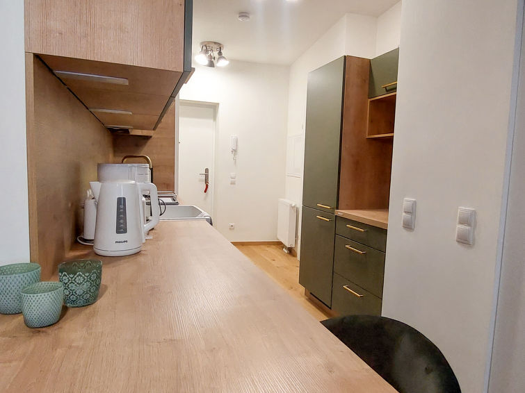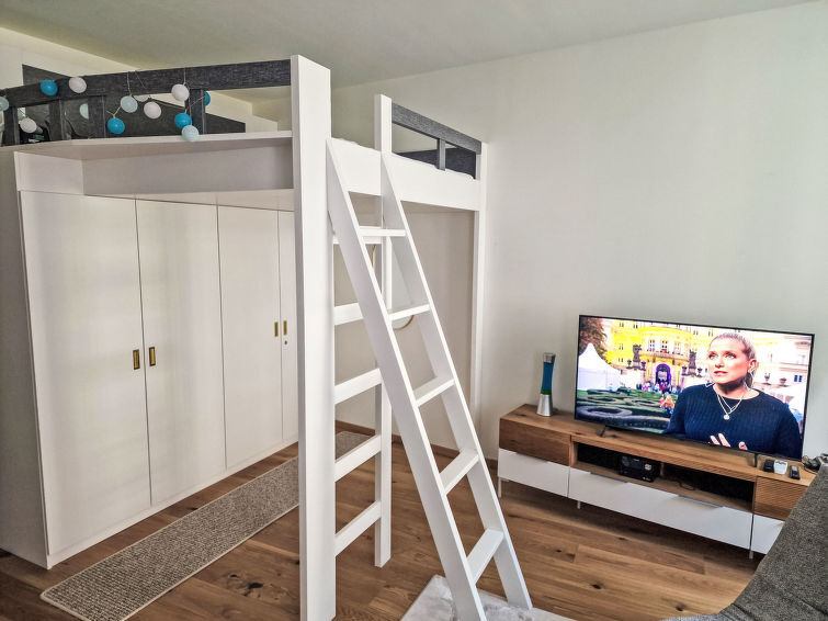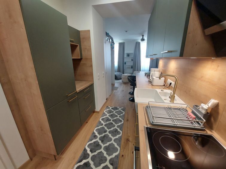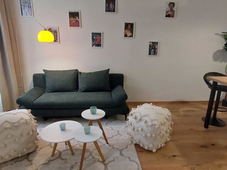 "Premium Apartment MariaHilf 1" studio 42 m2 au 2ème étage. Logement idéal pour 4 adultes. Spacieux et clair, complètement rénové en 2023, aménagement très confortable et moderne: entrée. Séjour/chambre à coucher ouvert avec 1 x 1 lits superposés (180 cm, longueur 190 cm), 1 lit gigogne (2 pers.), TV (câblée), écran plat, radio, lecteur CD et DVD. Cuisine ouverte dans l'entrée (4 plaques de cuisson, lave-vaisselle, grille-pain, bouilloire électrique, cafetière électrique). Bain/WC. Chauffage. Sol en bois. A disposition: lave-linge, fer à repasser, lit bébé. Internet (Connexion WIFI, gratuit). Veuillez noter: logement non-fumeur. Lits superposés (180cm) est un lit mezzanine.