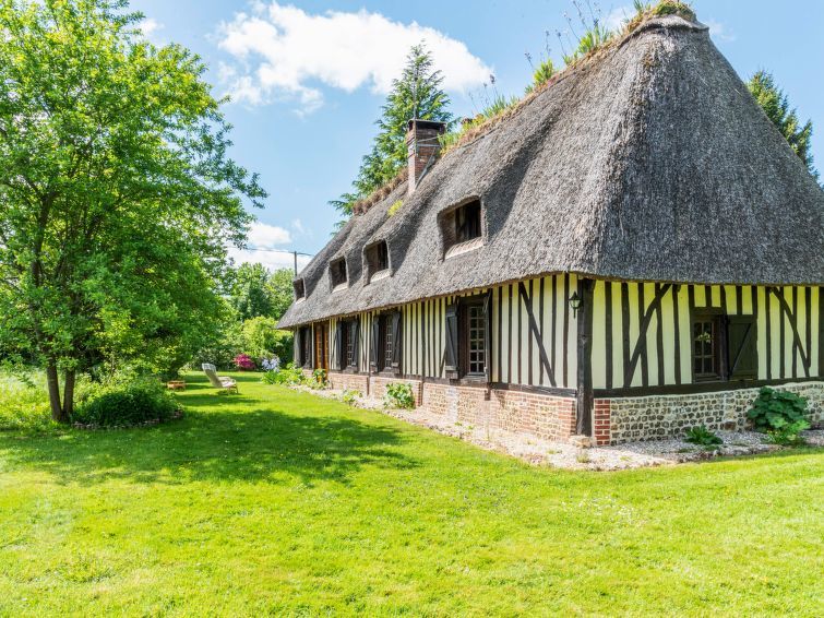 Belle maison de campagne "La Chaumière", environnée par les arbres. Dans le hameau de Dubus, en bordure de la localité, à 5 km du centre de Saint Georges de vievre, à 20 km de la forêt, à 50 km de la mer. En commun: terrain 5'000 m2 (clôturé), place de parking (pour 4 voitures). Arrêt de bus "LIEUREY - Poste" 5.5 km. Attractions à proximité: Cormeilles 15 km, Deauville 50 km, Honfleur 40 km, Le Bec hellouin 16 km. Région de randonnées: Foret de Brotonne, Le Marais Vernier 35 km. Veuillez noter: voiture recommandée.