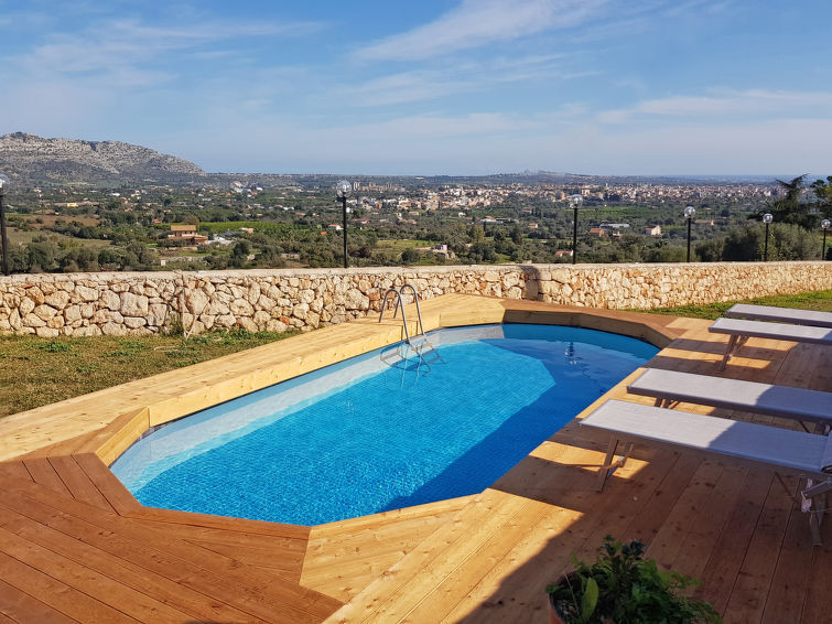 Villa "Bellavista". In de plaats, 5 km van het centrum van Floridia, 20 km van het centrum van Siracusa, geïsoleerde, zonnige ligging, 20 km van zee, 22 km van het strand. Voor alleengebruik: terrein 1.700 m2 (omheind), tuin 40 m2, openluchtzwembad (verhoogd) (7 x 3 m, 120 cm diepte, seizoensgebonden beschikbaarheid: 01.Apr. - 31.Okt.). Buitendouche, onderhoud zwembad door de eigenaar/tuinman. Parkeerplaats (voor 2 auto's) op het terrein. Levensmiddelenwinkel 4 km, supermarkt 2.5 km, restaurant 4 km, bushalte 2.5 km, zandstrand "Fontane Bianche" 22 km. Tennis 6 km, manege 7 km. Attracties in de buurt: Necropoli di Pantalica 43 km, Noto 44 km, Marzamemi 57 km, Catania 60 km, Ragusa 70 km, Modica 77 km. Wandelgebied Riserva Naturale Cavagrande di Cassibile 32 km, Riserva Naturale Faunistica Vendicari 47 m. Auto noodzakelijk.