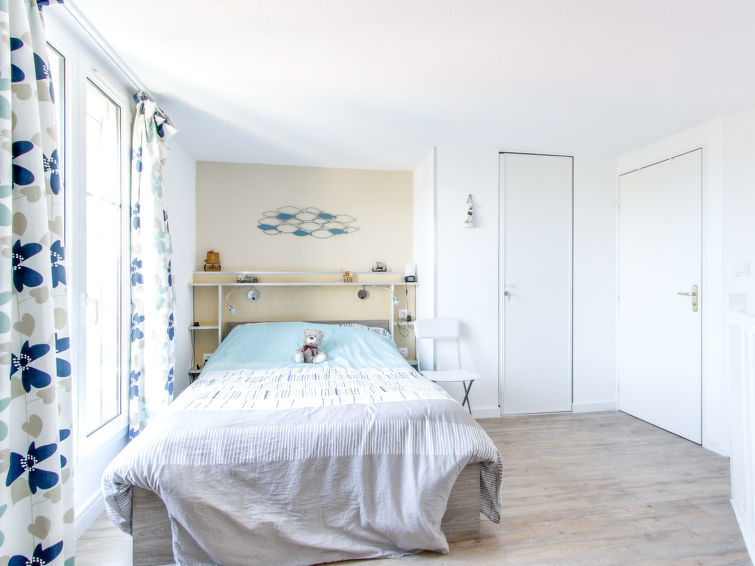 Appartement 2-kamers 35 m2 op 2 verdiepingen op de 2e verdieping, op het noordwesten gelegen. Woon-/eetkamer met TV (Flatscreen TV), elektrische rolluiken. Uitgang naar het balkon. Kookhoek (afwasmachine, 3 inductiekookplaten, broodrooster, waterkoker, magnetron, diepvriezer, elektrische koffiemachine) met bar. Aparte WC. Elektrische verwarming. Bovenverdieping: 1 kamer met 1 2-pers bed (140 cm, lengte 190 cm). Douche/WC. Parketvloeren. Balkon 5 m2. Balkonmeubilair. Mooi uitzicht in de verte op zee en de rivier. Ter beschikking: haardroger. Internet (Internet (WiFi), extra). Parkeerplaats nr. 2831. Rookmelders.