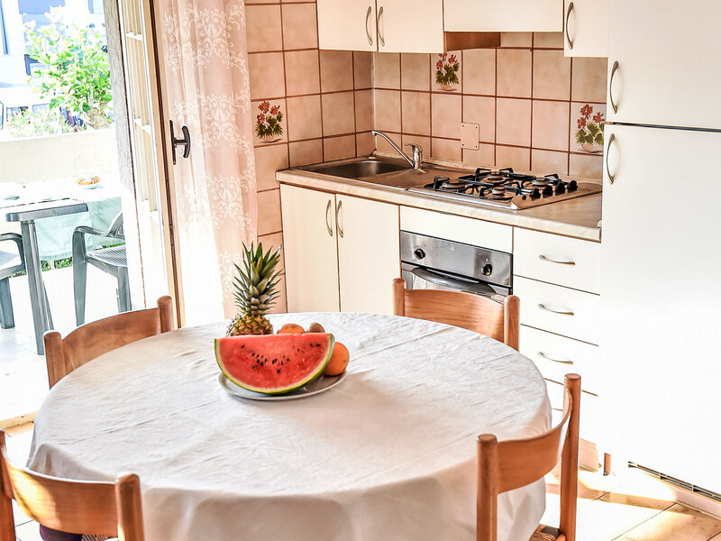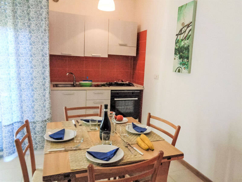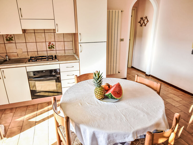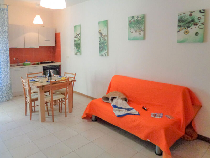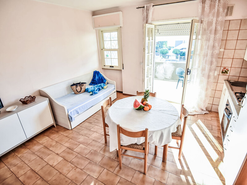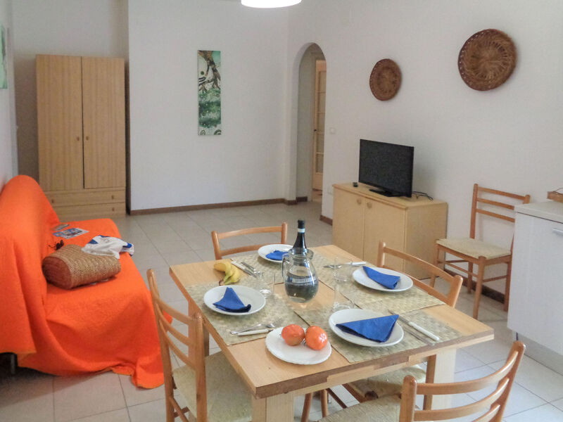 Appartement 2-kamers 45 m2. Eenvoudig en doelmatig ingericht: woon-/eetkamer met 1 2-pers divanbed en TV. 1 2-pers. kamer. Kookhoek (4-pits kookplaat). Douche/bidet/WC. Balkon. Maximaal 1 huisdier/hond toegestaan. IT067040B4QJRTH8OS