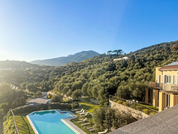 Mooi residentie "I Castellari", van 2 verdiepingen, omgeven door bomen en velden. 9 appartementen in de woning. 700 m van het centrum van Pietra Ligure, 4 km van het centrum van Finale Ligure, geïsoleerde, rustige, zonnige ligging op een heuvel, 700 m van zee. Voor medegebruik: park 2.000 m2, verzorgde tuin, openluchtzwembad (15 x 7 m, seizoensgebonden beschikbaarheid: 01.Apr. - 01.Nov.) met trap. Buitendouche. In het complex: receptie, bar, ontbijtruimte, salon, bergruimte voor fietsen, zonneterras, wasmachine (voor medegebruik). Parkeerplaats (voor 15 auto's). Levensmiddelenwinkel, restaurant, bakkerij, café, fietsverhuur, bushalte 700 m, treinstation "Pietra Ligure" 3 km. Attracties in de buurt: Finalborgo 8 km. De afgebeelde foto is slechts een voorbeeld.