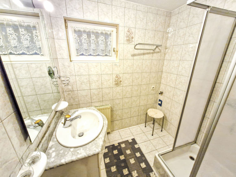 "Helga", appartement 1-kamer 33 m2, souterrain. Doelmatig en gezellig ingericht: hal. 1 2-pers. kamer. Kleine keuken (oven, afwasmachine, 4 keramische glas kookplaten, broodrooster, waterkoker, elektrische koffiemachine) met eethoek en Sat-TV (Flatscreen TV). Douche/WC. Verwarming. Parketvloeren. Kleine zithoek in de tuin. Ter beschikking: Internet (WiFi, gratis). Parkeerplaats (overdekt) bij het huis. Niet rokers woning. Maximaal 1 huisdier/hond toegestaan. Privé ingang.