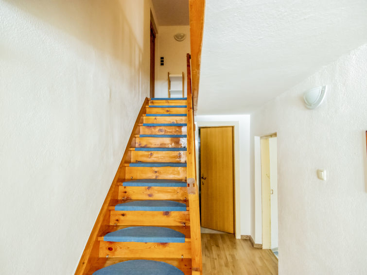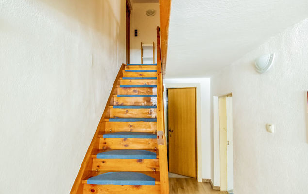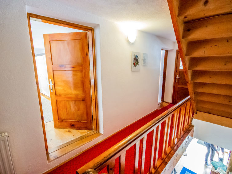 Appartement 3-kamers 90 m2 op 2 verdiepingen. Gezellig en met veel hout ingericht: hal. Woonkamer met eethoek en tegelkachel. Keuken (oven, afwasmachine, 4 keramische glas kookplaten, magnetron) met eethoek en houtkachel. Douche/WC. Bovenverdieping: 1 kamer met 1 bed en 1 2-pers bed. 1 kamer met 2 bedden en 1 2-pers bed. Douche/WC. De woonkamer is een boerderij-achtige lounge. Zithoek in de tuin. Mooi uitzicht op de bergen en het landschap. Let op: appartement aan de binnenplaats. Niet rokers woning.