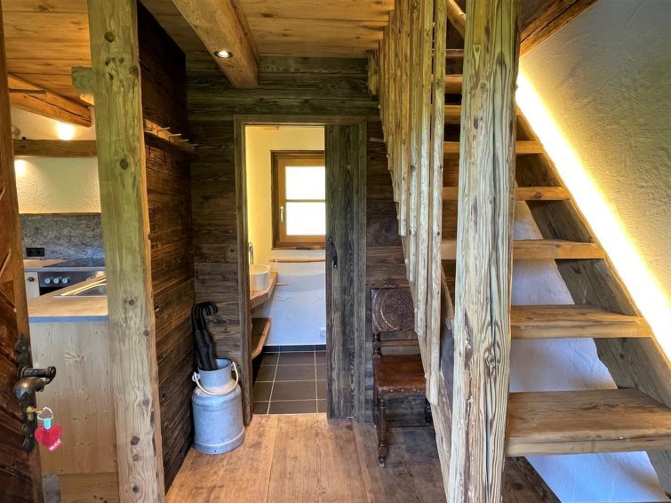 "Troadkasten", huis 2-kamers 45 m2 op 2 verdiepingen. Licht, volledig gerenoveerd in 2022, zeer smaakvol en gezellig ingericht: hal. Woonkeuken (oven, afwasmachine, 4 keramische glas kookplaten, waterkoker, elektrische koffiemachine) met eethoek en Sat-TV (Flatscreen TV). Uitgang naar de loggia. Bad/douche. Verwarming. Bovenverdieping: 1 2-pers. kamer met 1 2-pers bed. Galerij met bibliotheek. Uitgang naar het balkon. Aparte WC. Verwarming. Houten vloeren. Balkon. Loggia, zitgelegenheid. Zeer mooi uitzicht op de bergen, het dal en het landschap. Ter beschikking: Internet (Internet (WiFi), gratis). Rookvrij huis. Rookmelders, brandblusser.
