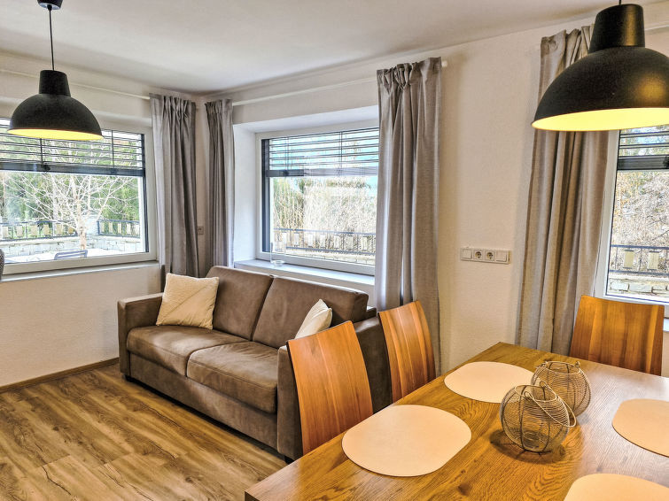 "Marina", appartement 3-kamers 70 m2, souterrain, op het noorden gelegen. Comfortabel en modern ingericht: hal. 1 2-pers. kamer. 1 kamer met 1 2-pers bed (160 cm, lengte 200 cm). Groot woonkeuken (oven, afwasmachine, 4 keramische glas kookplaten, broodrooster, waterkoker, elektrische koffiemachine) met 1 2-pers divanbed, eettafel en Sat-TV (Flatscreen TV). Douche/WC, aparte WC, dubbele wastafels. Vloerverwarming. Parketvloeren. Groot terras, op het westen gelegen. Terrasmeubelen. Zijdelings uitzicht op de bergen. Ter beschikking: Internet (WiFi, gratis). Parkeerplaats (overdekt). Geschikt voor families. Niet rokers woning. Maximaal 1 huisdier/hond toegestaan. Privé ingang.