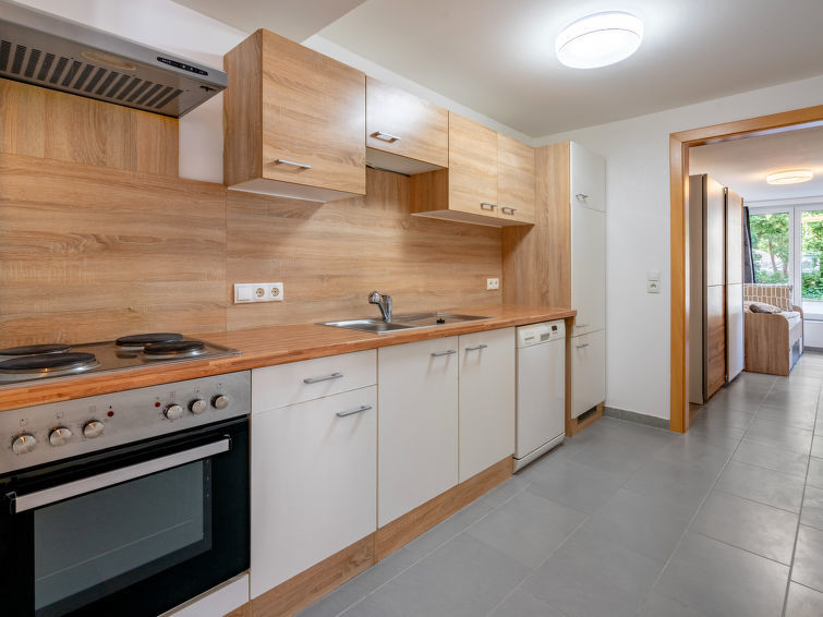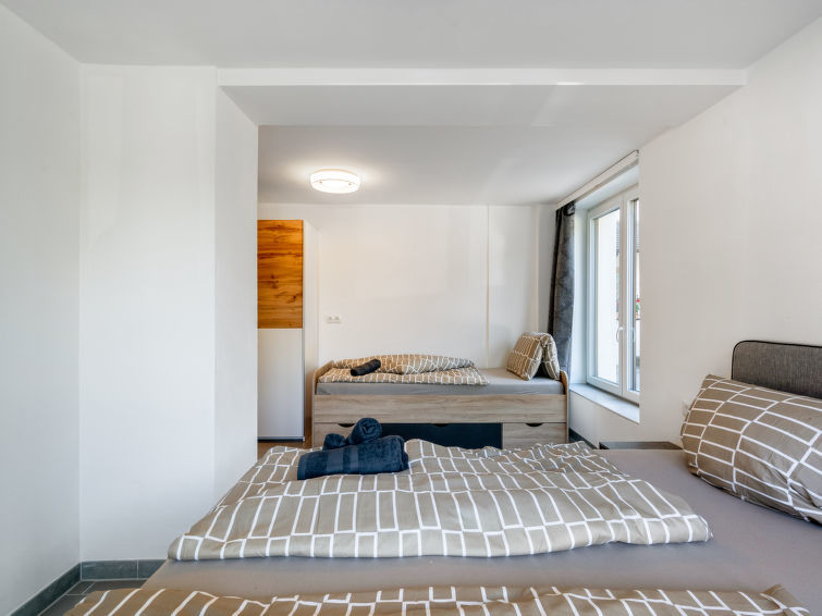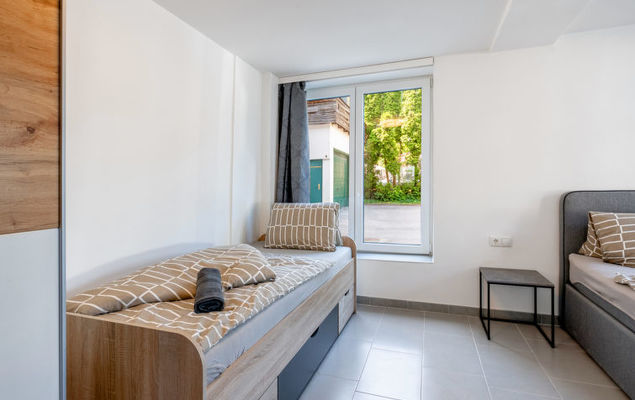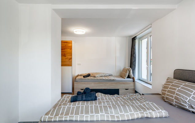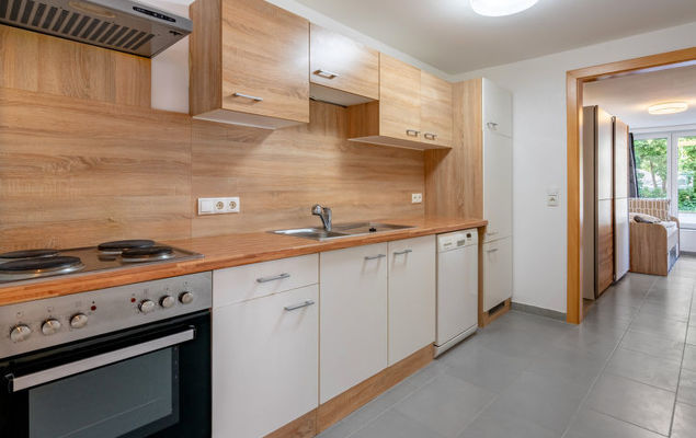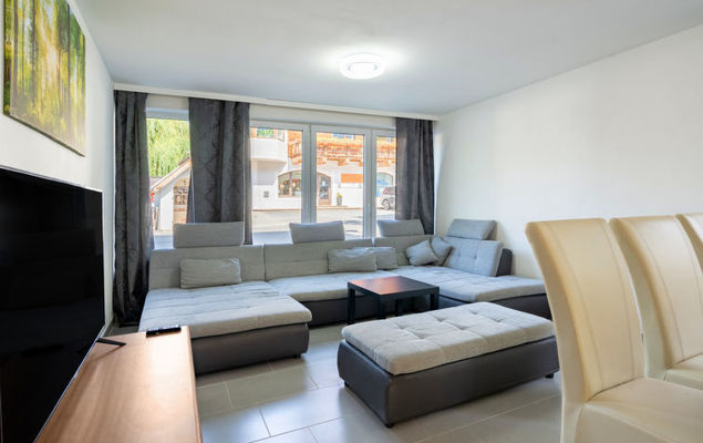 "Top 1", appartement 3-kamers 80 m2, op de begane grond. Ruim, modern ingericht: hal. Woon-/slaapkamer met 1 2-pers divanbed, eettafel en TV (Flatscreen TV). 1 kamer met 1 2-pers bed. 1 2-pers. kamer. Groot, open keuken (4-pits kookplaat, oven, afwasmachine, waterkoker, elektrische koffiemachine). Douche/WC. Ter beschikking: Internet (Internet (WiFi), gratis). Let op: niet rokers woning.