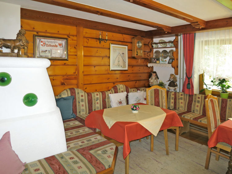 "Wiesenhof (LFD201)", appartement 4-kamers 90 m2 op 2 verdiepingen. Gerenoveerd in 2015, doelmatig en gezellig ingericht: woonkamer met eethoek, Sat-TV en tegelkachel. Bovenverdieping: 2 kamers, elke kamer heeft 1 2-pers bed, wastafel en douche/WC. Uitgang naar het balkon. 1 kamer met 1 2-pers bed en douche/WC. Uitgang naar het balkon. Keuken (4-pits kookplaat, oven, afwasmachine, waterkoker, magnetron, elektrische koffiemachine) met eettafel. Olie-verwarming. Parketvloeren. De woonkamer is een boerderij-achtige lounge. Balkon. Balkonmeubilair. Panoramazicht op Gamskogel / Hauerkogel. Ter beschikking: Internet (Internet (WiFi), gratis). Let op: maximaal 2 huisdieren/honden toegestaan. Rookmelders. Geen interne verbinding tussen de etages.