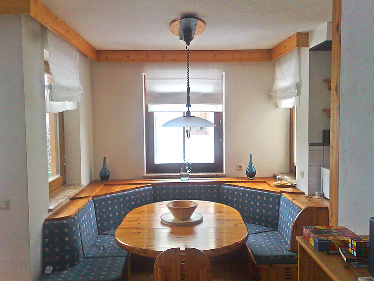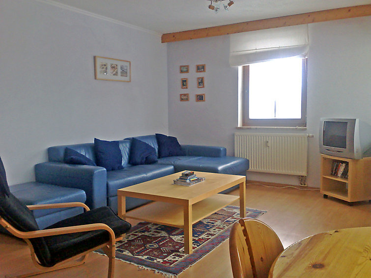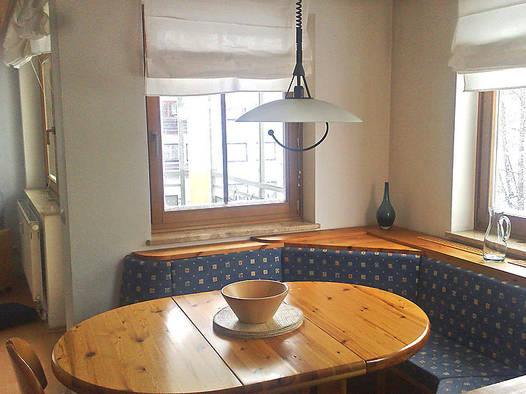 Appartement 3-kamers 80 m2 op de 2e verdieping. Modern en gezellig ingericht: hal. Woon-/slaapkamer met 1 2-pers divanbed, Kabel-TV en DVD. Uitgang naar het balkon. 1 2-pers. kamer. 1 kamer met 1 bed en 1 x 2 stapelbedden. Open keuken (4-pits kookplaat, oven, afwasmachine, magnetron) met eethoek. Badkamer, aparte WC. Balkon. Terrasmeubelen, bergruimte. Zeer mooi uitzicht op de bergen en de skipiste. Ter beschikking: wasmachine, kinderbed. Internet (Internet (WiFi), gratis). Let op: niet rokers woning. Rookmelders. Voor het kinderbed is geen linnengoed beschikbaar. Huisdieren zijn niet toegestaan. 50628-000691-2020
