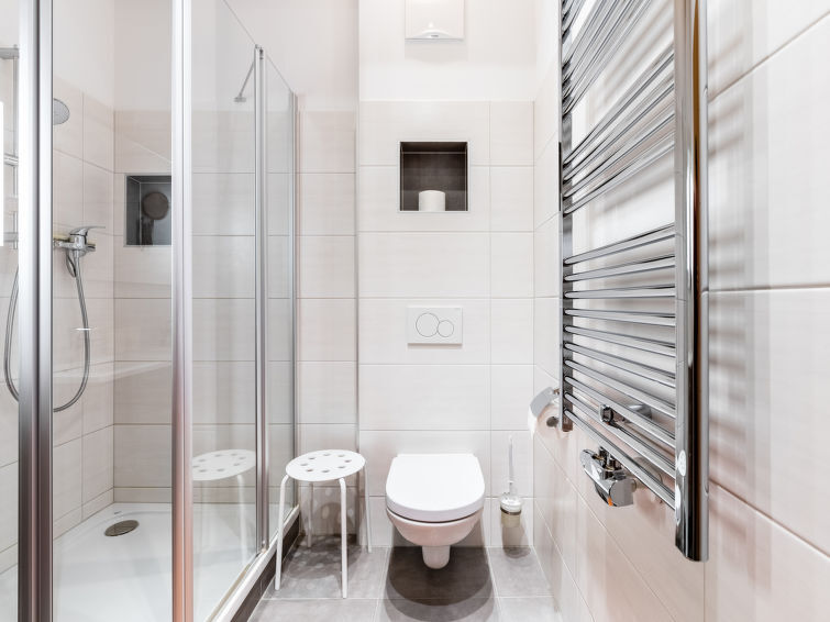 Appartement 3-kamers 65 m2, op de bovenste verdieping. Afgeschuinde daken, romantisch ingericht: 1 2-pers. kamer met douche/WC, dubbele wastafels en Sat-TV (Flatscreen TV). 1 2-pers. kamer met Sat-TV (Flatscreen TV). Groot woonkeuken (oven, afwasmachine, 4 keramische glas kookplaten, magnetron, elektrische koffiemachine, pads voor de koffiemachine (Senseo)) met 1 uitschuifbaar bed (2 pers.), eettafel en Sat-TV (Flatscreen TV). Uitgang naar het balkon. Douche, aparte WC, dubbele wastafels. Vloerverwarming. Balkon 5 m2. Uitzicht op het landschap. Ter beschikking: kinderstoel tot 2 jaar, haardroger. Internet (Internet (WiFi), gratis). Niet rokers woning. Rookmelders. 50616-001214-2020