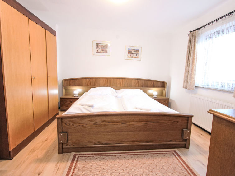 "Aparthaus Bruck", huis 6-kamers 180 m2. Gezellig ingericht: hal. Eetkamer met eethoek en Sat-TV (Flatscreen TV). 1 2-pers. kamer. 1 kamer met 2 bedden (90 cm, lengte 200 cm). Groot keuken (oven, afwasmachine, 4 inductiekookplaten, broodrooster, waterkoker, magnetron, elektrische koffiemachine). Badkamer, aparte WC. Bovenverdieping: woonkamer met Sat-TV. 3 2-pers. kamers. Douche, aparte WC. 506020003132020
